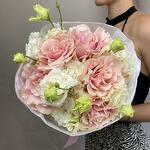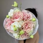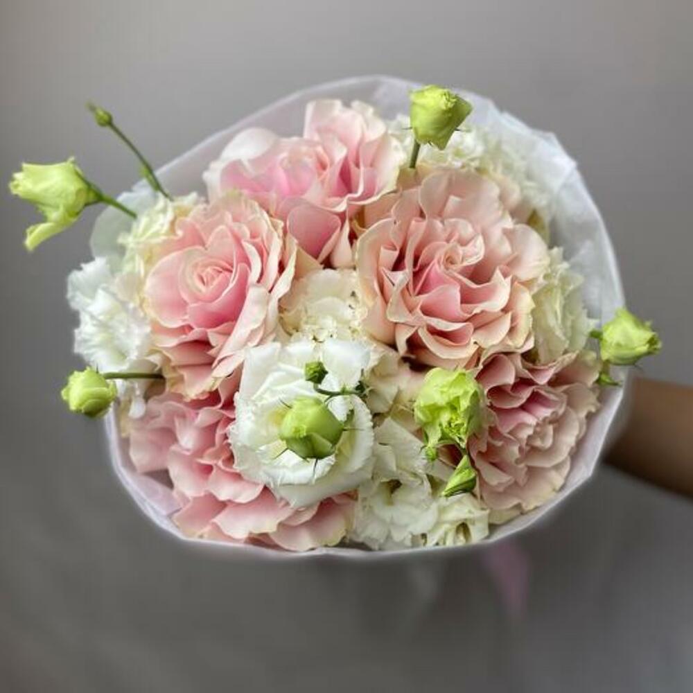 Our bouquet is a delicate blend of soft French roses and graceful eustoma. The combination of these refined blooms creates a bouquet that radiates tenderness and sophistication, perfect for expressing love or marking a special occasion. Beautifully handcrafted, this bouquet embodies charm and elegance, arriving ready to enchant and delight.