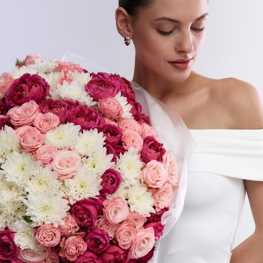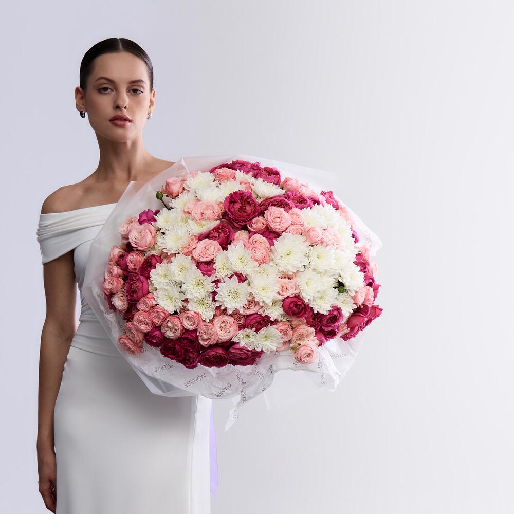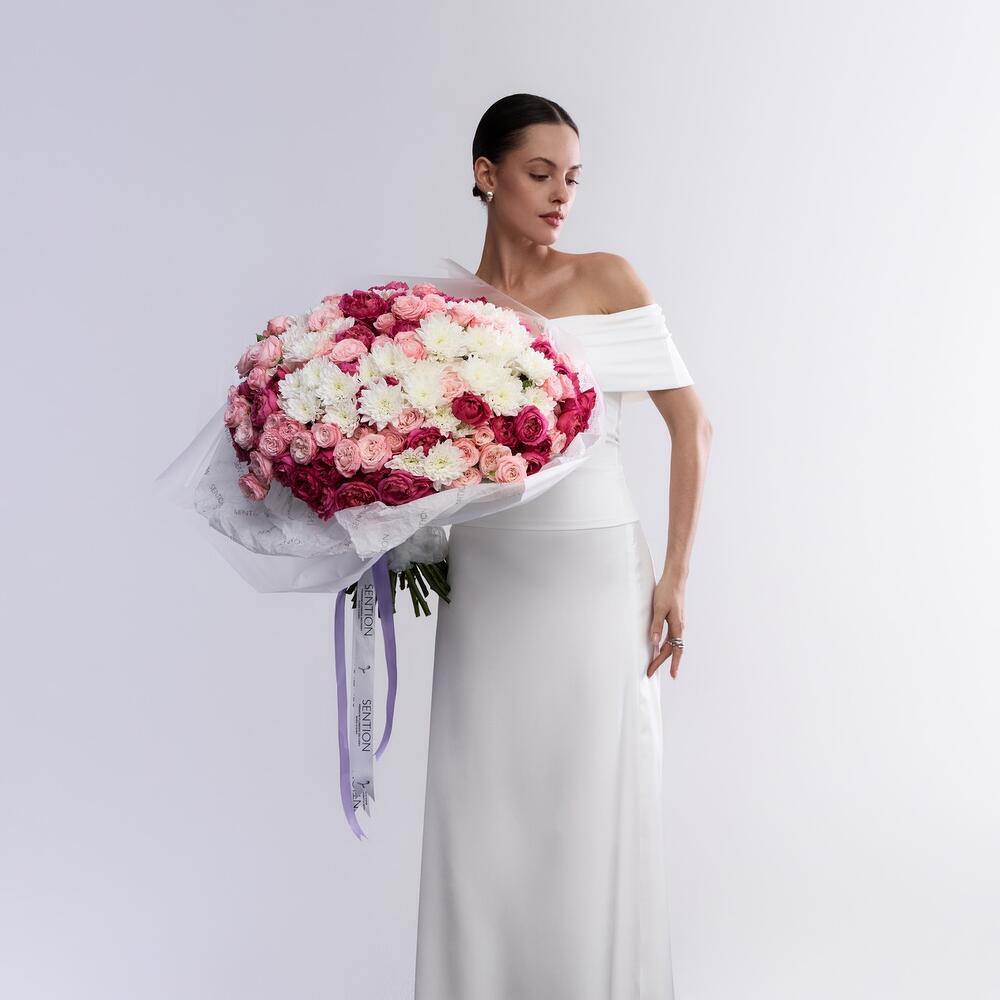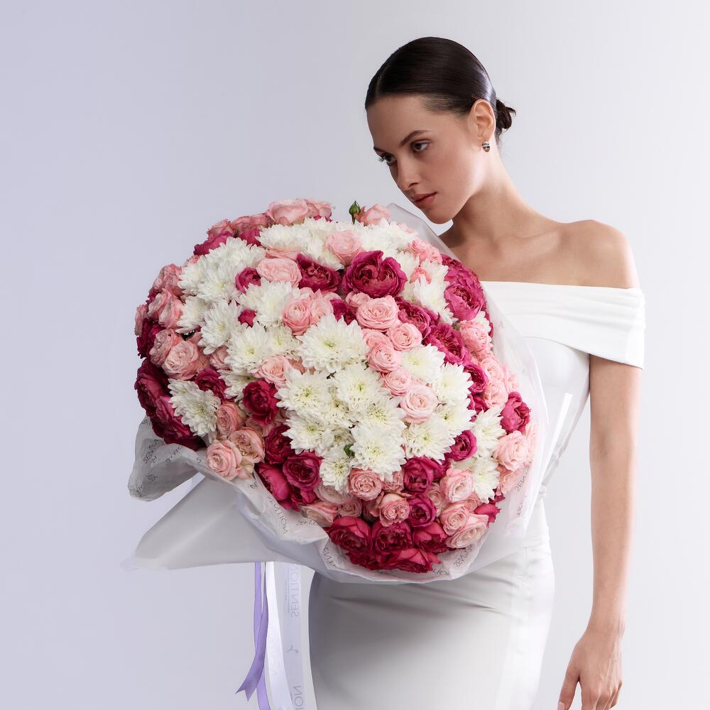 Chrysanthemum - 20 pcs bombastic rose - 20 pcs cerise spray rose - 20 pcs