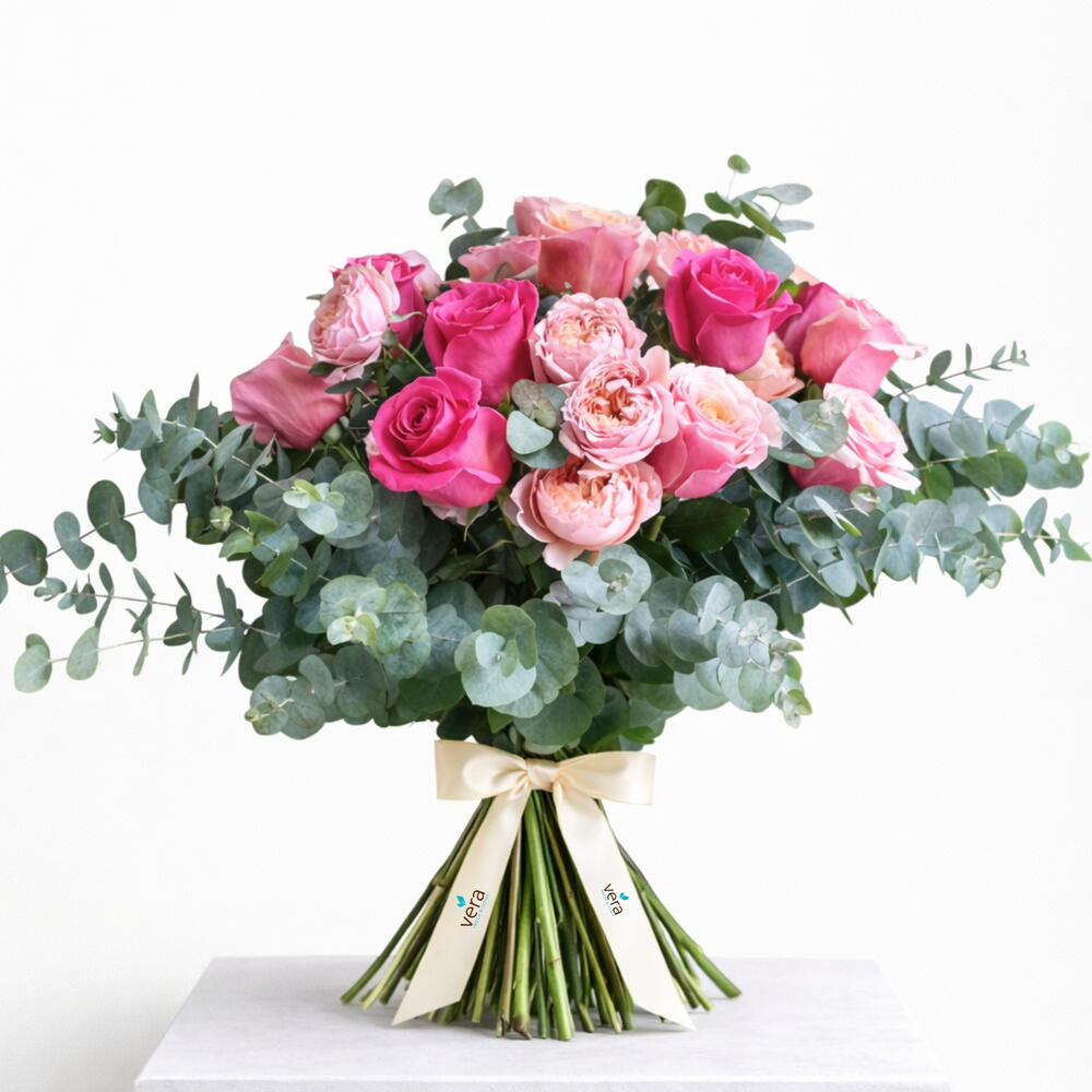 Eucalyptus - 8 pcs fuchsia rose - 10 pcs julieta baby rose - 3 pcs