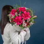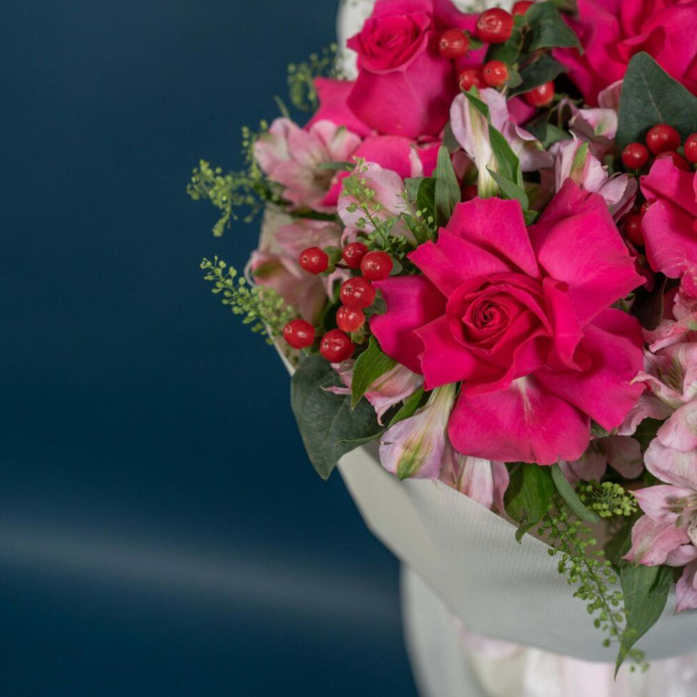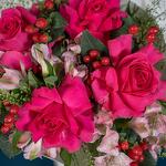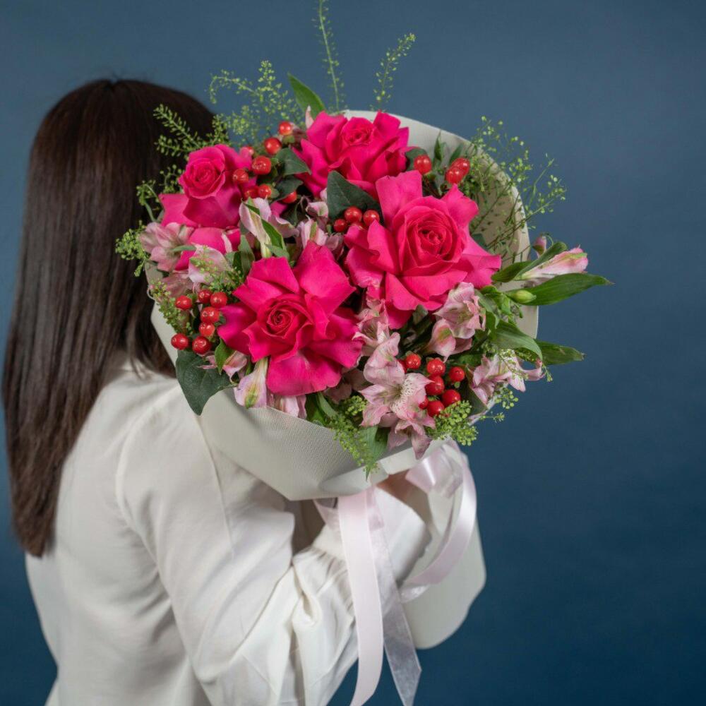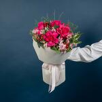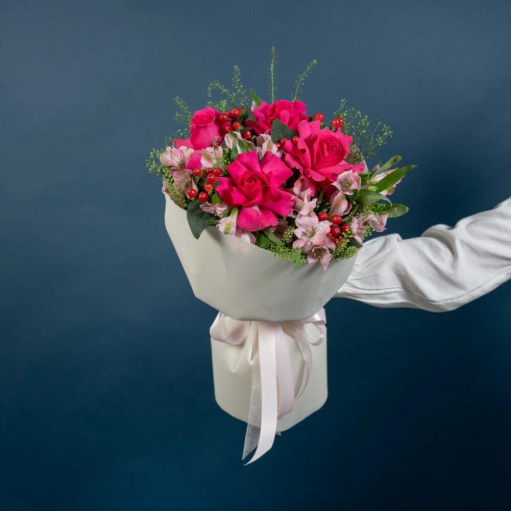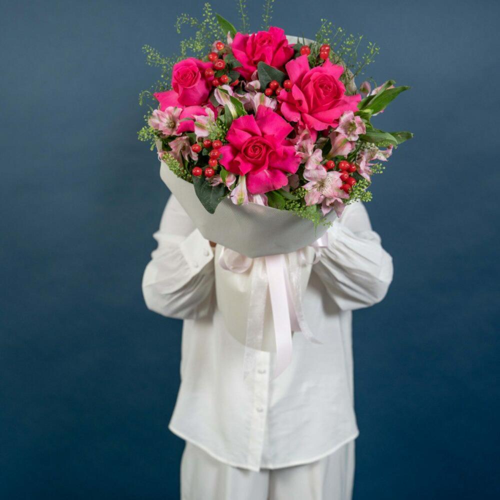 hypericum red - 5 pcs alstroemeria pink - 6 pcs thalaspi - 4 pcs rose fuschia floyds - 4 pcs
