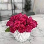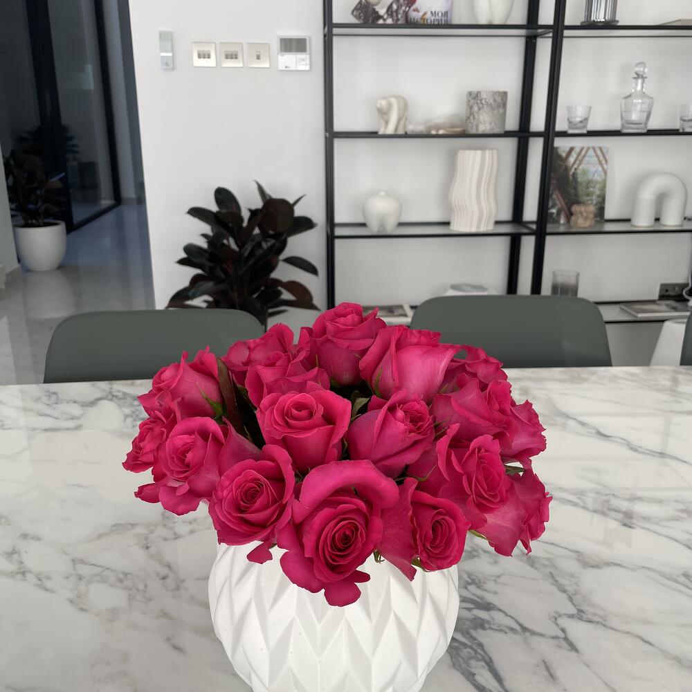 fucsia rose - 25 pcs white vase - 1 pcs