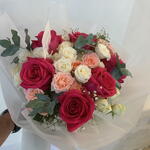 baby rose pink - 4 pcs white baby rose stems - 4 pcs fushia roses - 5 pcs