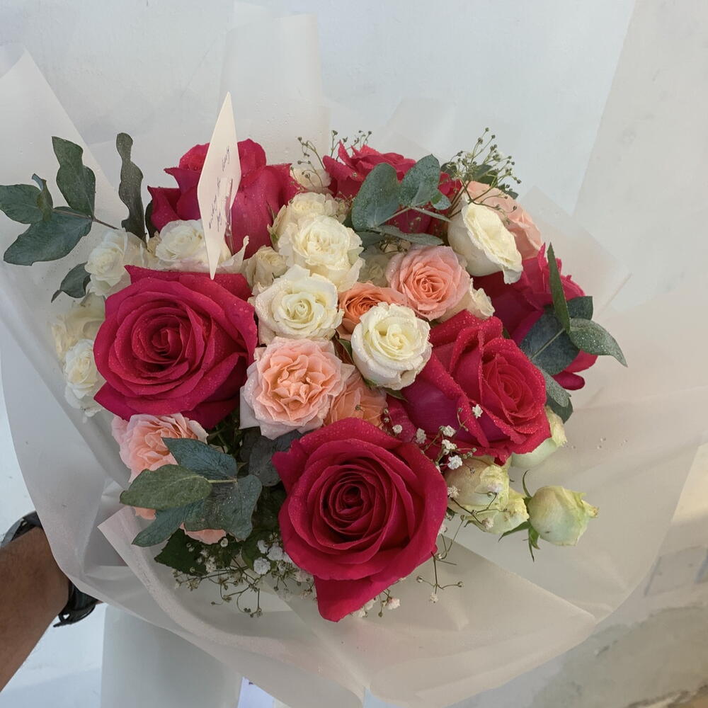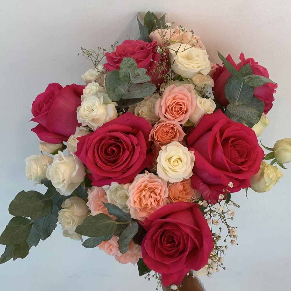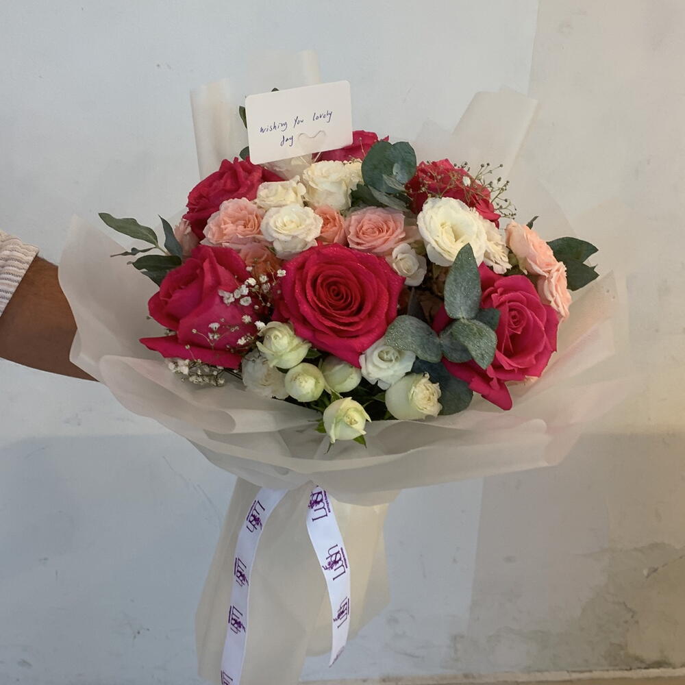 baby rose pink - 4 pcs white baby rose stems - 4 pcs fushia roses - 5 pcs