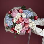 A charming and gentle mix of hydrangea, lilac, and roses, arranged into a delightful small bouquet. This natural composition evokes feelings of tenderness, joy, and admiration. Its a sweet, thoughtful gift perfect for Birthdays, Mothers Day, thank you gestures, or simply to brighten a loved ones day.