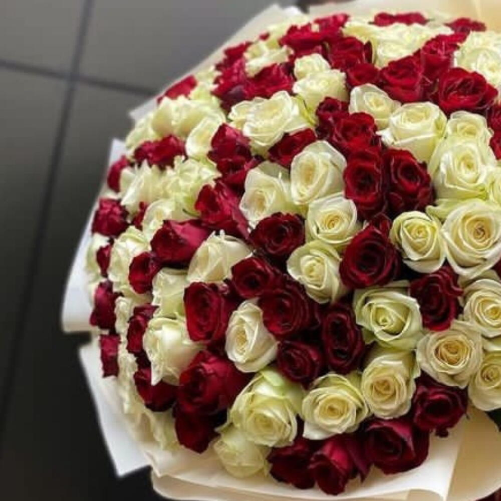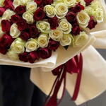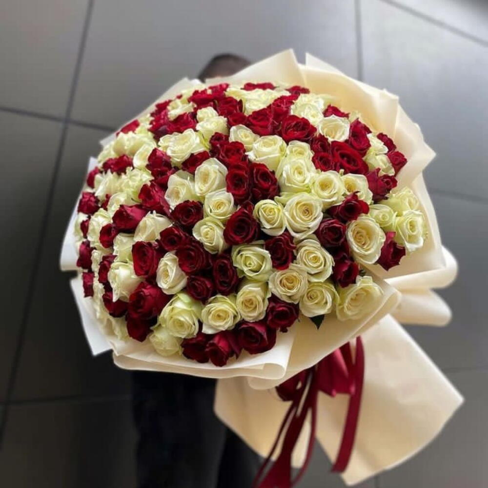 ribbon red - 3 pcs white and red bouquet - 149 pcs wrapping of white - 8 pcs