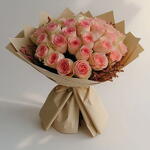 Gentle Blush: 31 Soft Pink Roses in Rustic Wrapping. Discover the delicate charm of the Gentle Blush Bouquet, an effortlessly elegant arrangement designed to convey tender affection and grace. This captivating bouquet features 31 exquisite soft pink roses, each bloom radiating warmth and subtle beauty. Presented in a unique, rustic brown paper wrapping, this bouquet offers a natural and heartfelt presentation that beautifully complements the delicate pink hues. Its a perfect blend of classic floral elegance with a charming, rustic touch, making it stand out for its thoughtful aesthetic. Key Features: 31 Soft Pink Roses: Symbolizing grace, happiness, and tender affection. Rustic Brown Paper Wrapping: Provides a natural, unique, and heartfelt presentation. Effortlessly Elegant: A charming display that adds warmth and sophistication to any setting. Handpicked for Freshness: Each rose is carefully selected to ensure lasting beauty and impact. Versatile Gifting: Ideal for birthdays, anniversaries, expressions of gratitude, or simply to brighten someones day. Handpicked for their pristine freshness and arranged with meticulous care by our expert florists in Dubai, the Gentle Blush Bouquet delivers a powerful message of love and appreciation. Whether youre celebrating a special milestone or sending a thoughtful gesture just because, this bouquet is sure to leave a memorable impression. Order your Gentle Blush Bouquet today for reliable flower delivery across Dubai and let its gentle beauty speak volumes.