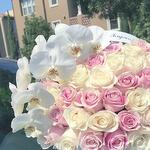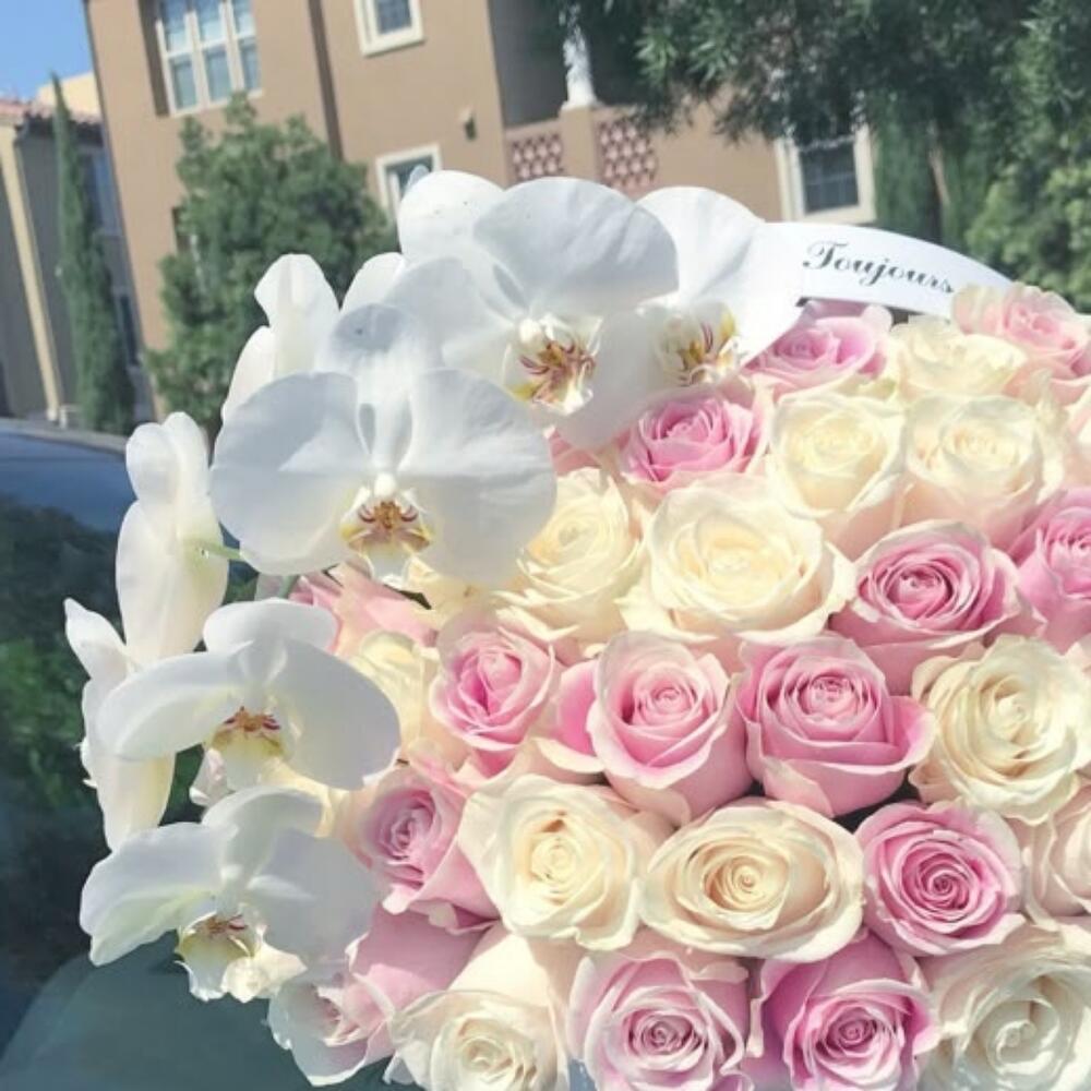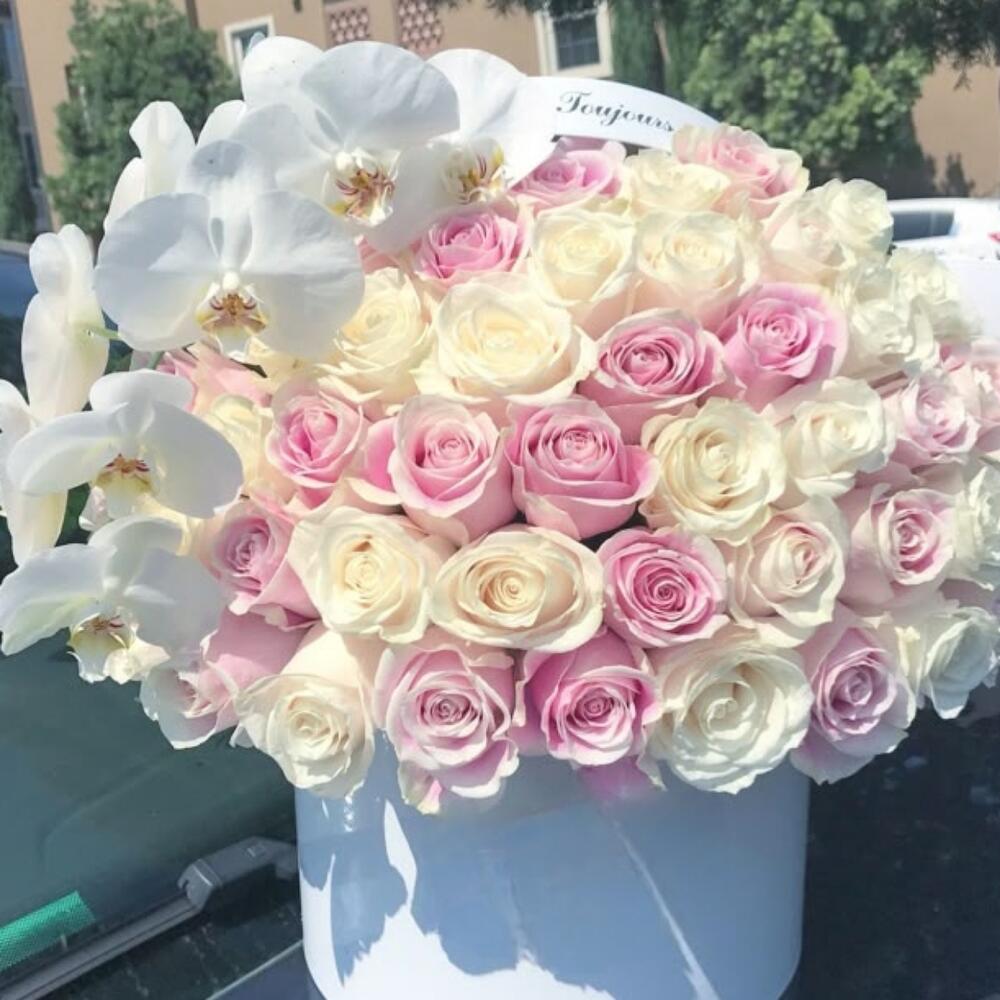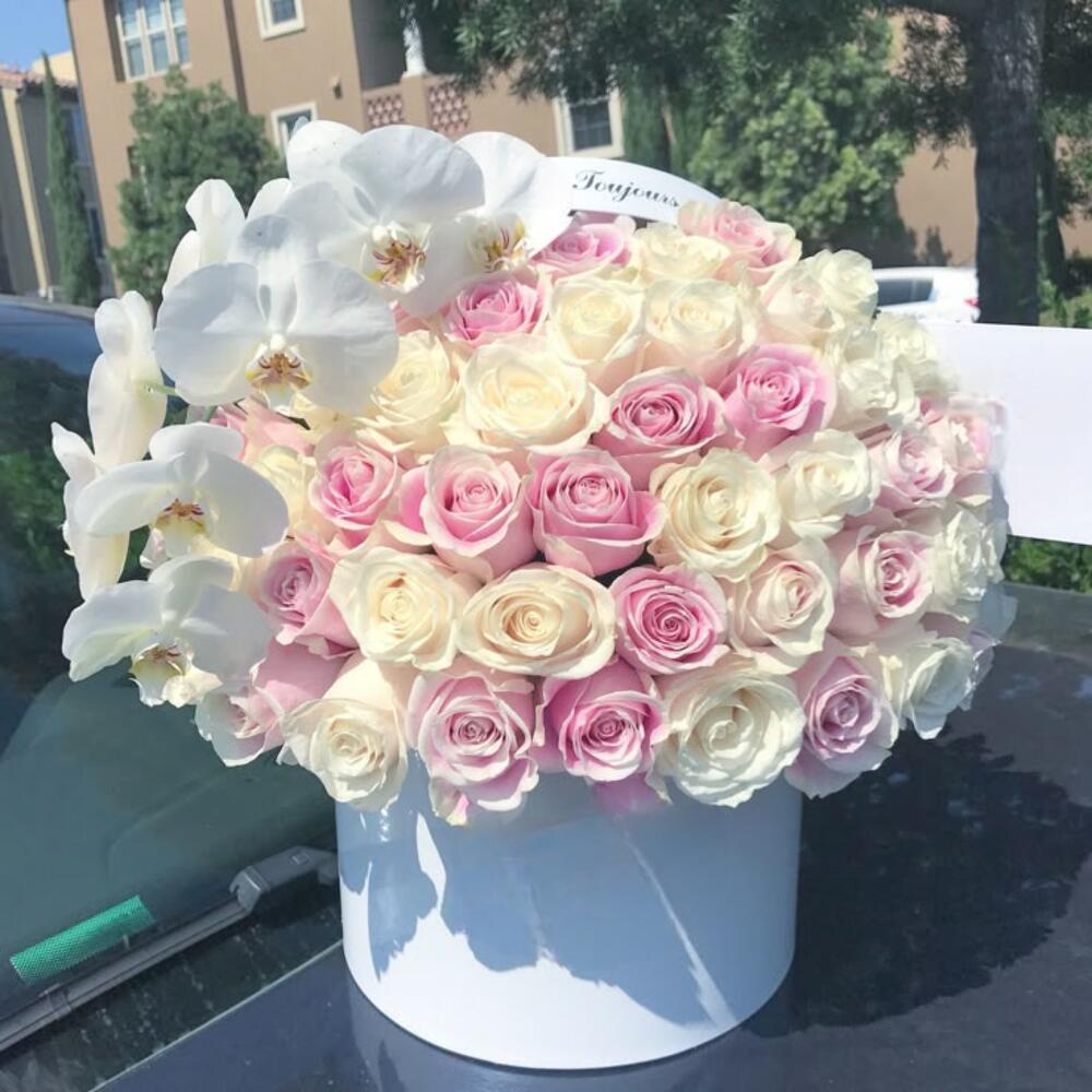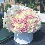 Box - 1 pcs orchid - 1 pcs wait rose - 35 pcs pink roses - 36 pcs