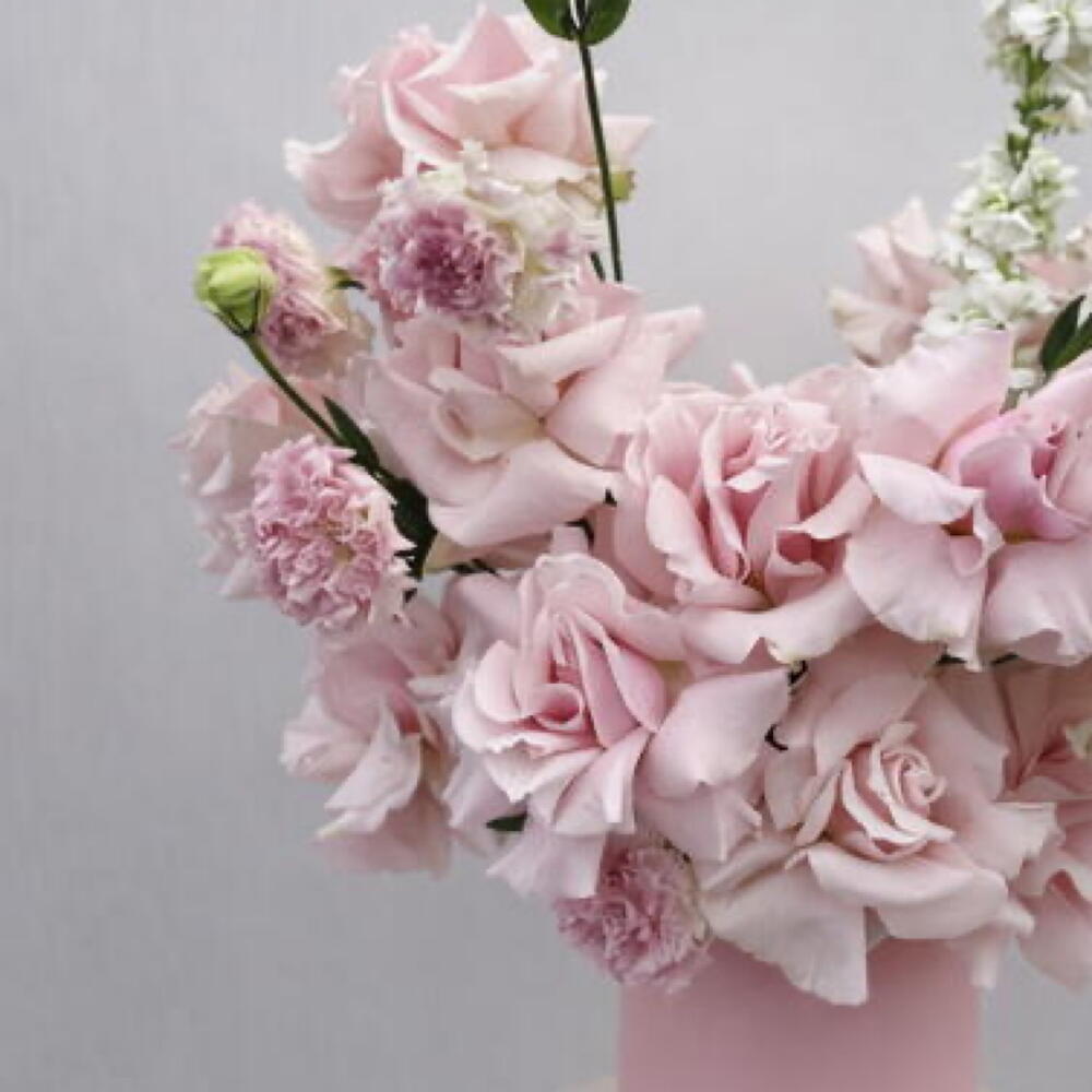 Soft, airy, and effortlessly elegant—this premium Pink flowers box is a dreamy Pastel Color bouquet arranged in a chic pink hat box. The arrangement is built around romantic Pink Roses, with tall, delicate mathiola white adding height and a garden-fresh feel, along with creamy White Lisianthus (Eustoma) buds to keep everything light and refined. Finished with fresh greenery, this design looks luxurious from every angle. Made with premium quality flowers, it’s a gorgeous Fresh bouquet / Fresh flowers bouquet and a true Premium flowers bouquet for gifting. It’s perfect as a Birthday Bouquet alternative (ideal for Birthday flowers and Flowers for birthday), and it also makes a stunning Congratulations bouquet with elegant Congratulations flowers. With Pink Roses, Pink Stock, Pink Scabiosa, and White Lisianthus, it also feels like a very sweet Romantic bouquet filled with love and romance flowers—a beautiful option for the best flowers for anniversary too. A stylish cool bouquet, always trending flowers and a truly unique flowers bouquet—perfect for anyone looking for the best bouquet in Dubai.