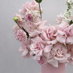 pink mondial rose - 15 pcs mathiola white - 3 pcs lisanthus pink - 4 pcs light pink medium box - 1 pcs