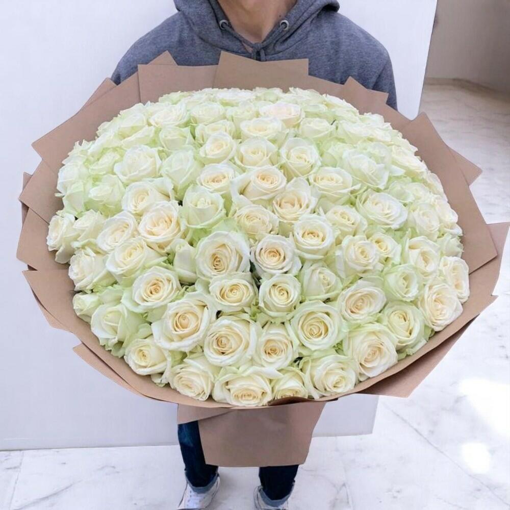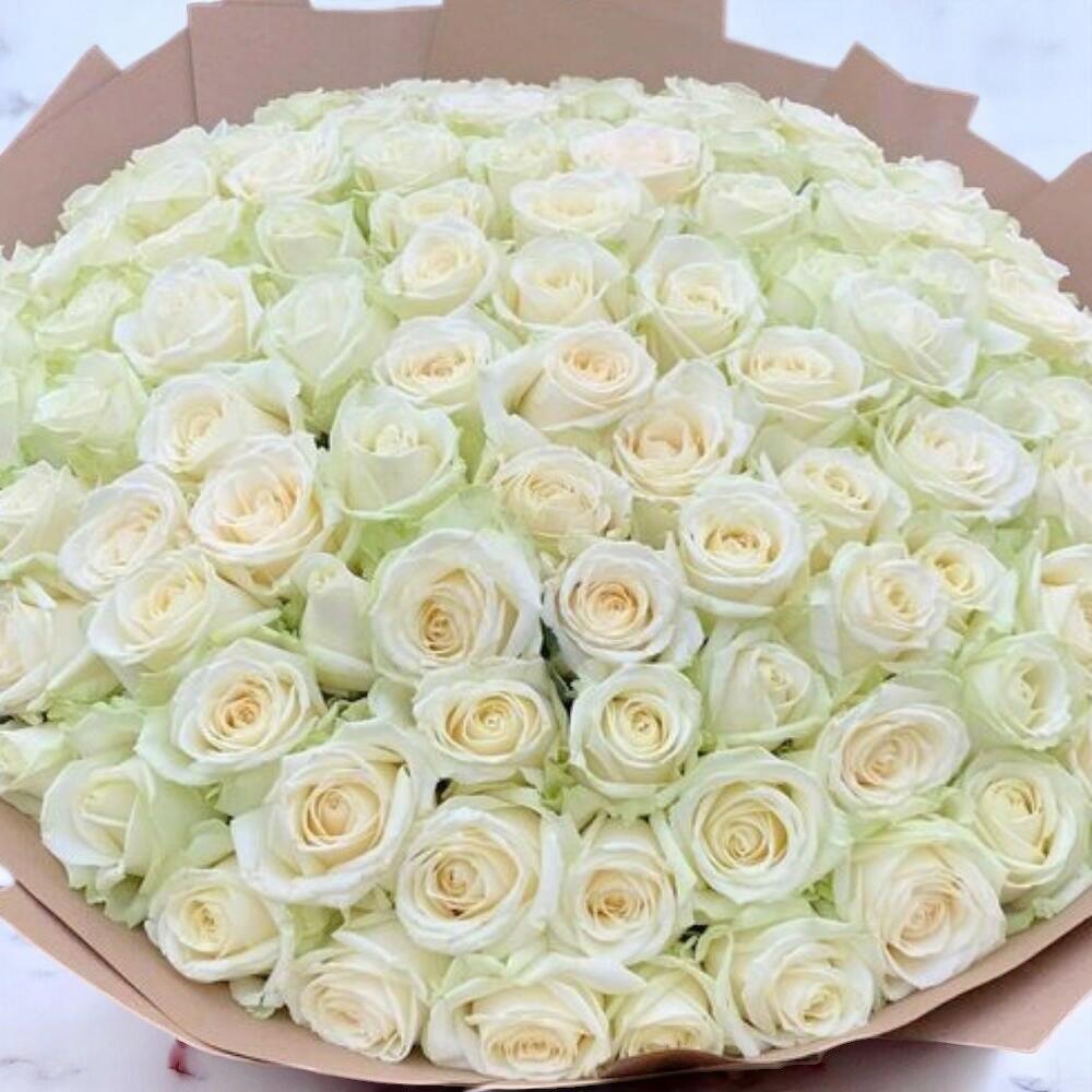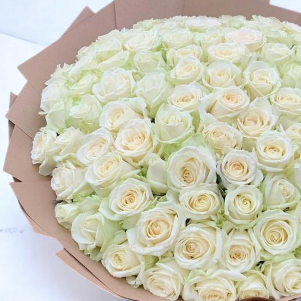 Gentle Ohara White Rose Bouquet – 70 Cream Roses Wrapped in Craft Paper for Elegant Gifting
