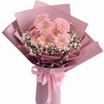 Bright gerabara blooms wrapped in soft pink paper perfect for birthdays celebrations romantic gestures and adding elegance to any space