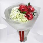 Hydrangea - 2 pcs Gerbera - 3 pcs Wrapping - 3 pcs