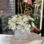Ruscus - 4 pcs Spray rose - 6 pcs Limonium - 2 pcs Chrysanthemum - 5 pcs rose - 5 pcs gypsum flower - 3 pcs