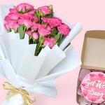 🎈 A romantic set including: – A mini vanilla cake with heart details and Get well soon message – A classic bouquet of 35fresh pink roses Perfect for your partner, best friend, or anyone who deserves a sweet surprise! 🎁 Love, joy, and elegance—all in one box.