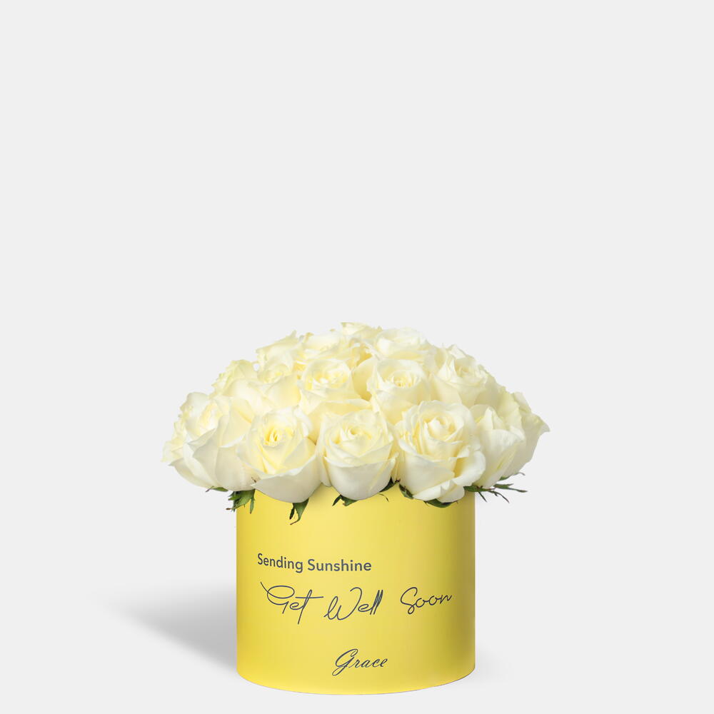Get well Soon White Roses in Medium Box