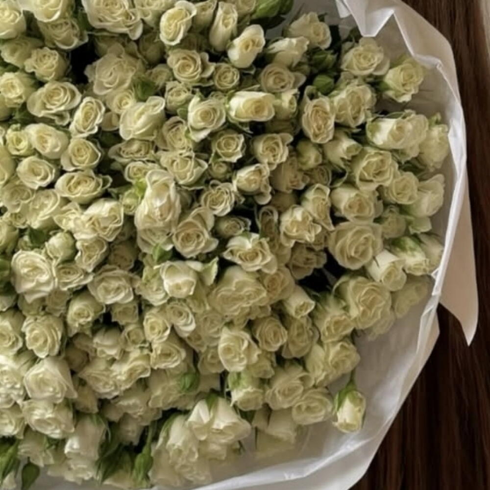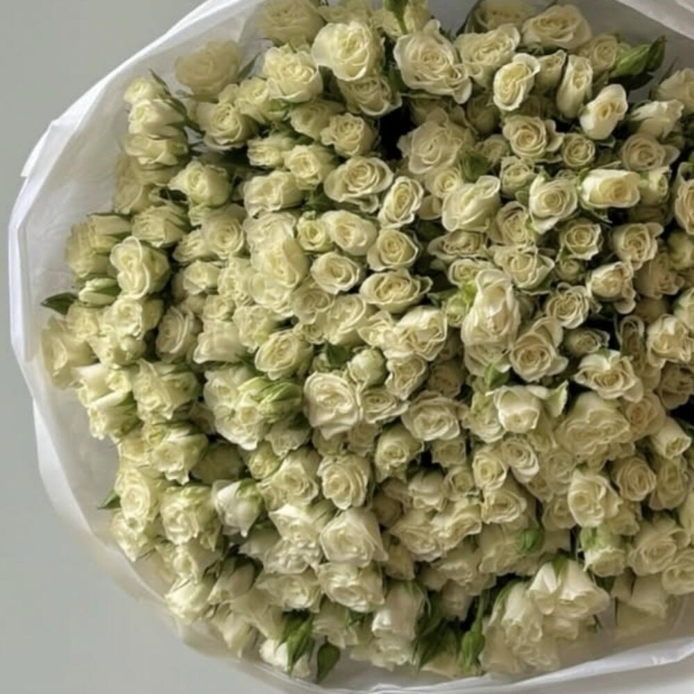 baby rose white - 59 pcs wrapping white - 5 pcs ribbon white - 2 pcs