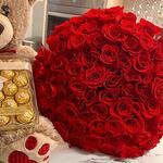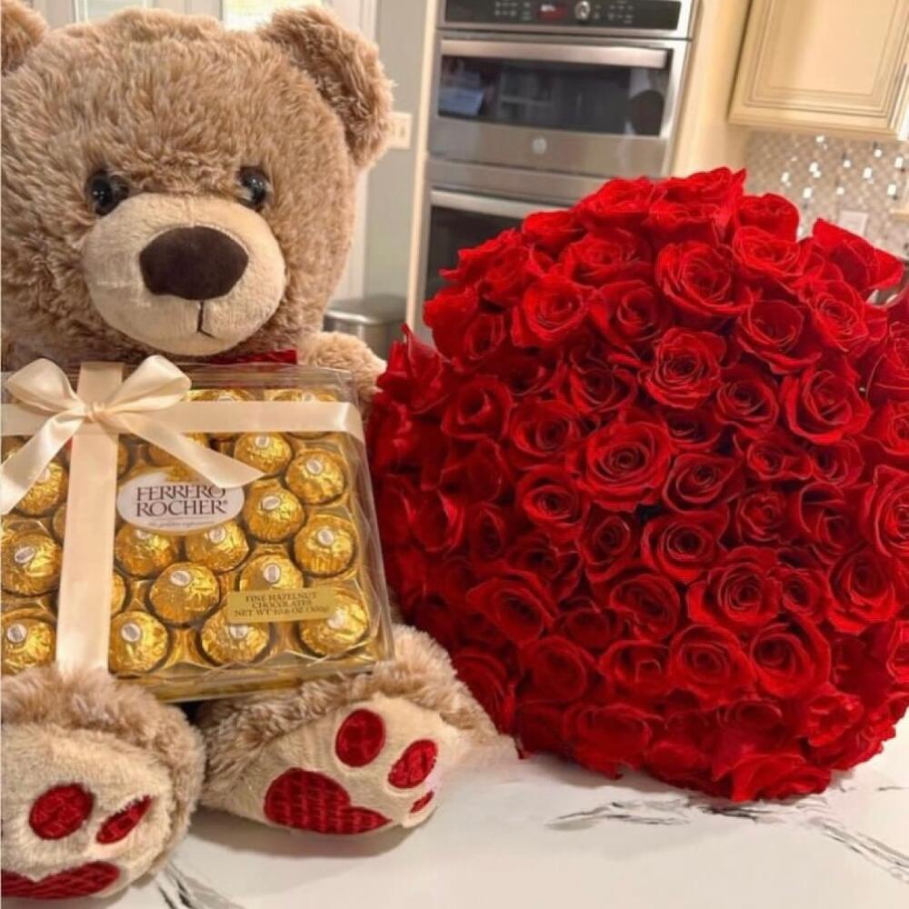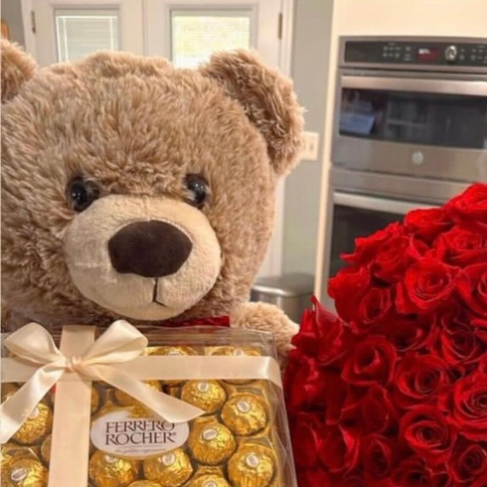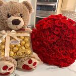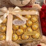 Red rose - 24 pcs medium size teddy - 1 pcs 24 box of ferrero rocher - 1 pcs