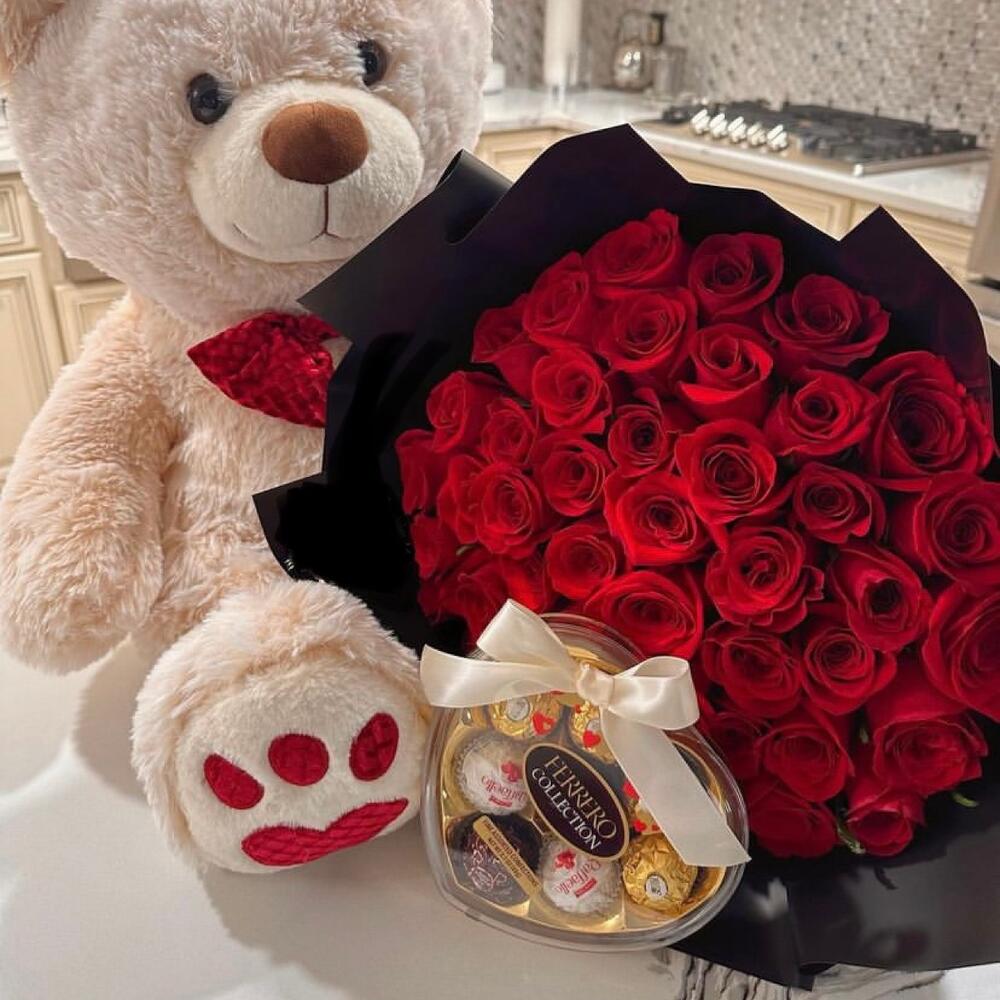 Teddy Bear Roses Gift Combo for Her – A Perfect Romantic Surprise 🎁🌹🐻 Make her feel special with our Teddy Bear Roses Gift Combo, a beautiful combination of fresh roses and a soft, cuddly teddy bear—the ultimate expression of love and affection. Whether it’s for a birthday, anniversary, Valentine’s Day, or just to show you care, this elegant gift set is sure to melt her heart.
