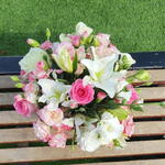Spray rose - 5 pcs Chrysanthemum - 5 pcs carnation pink - 5 pcs vase arrangements - 1 pcs lilly flowers - 2 pcs lisanthus white - 2 pcs