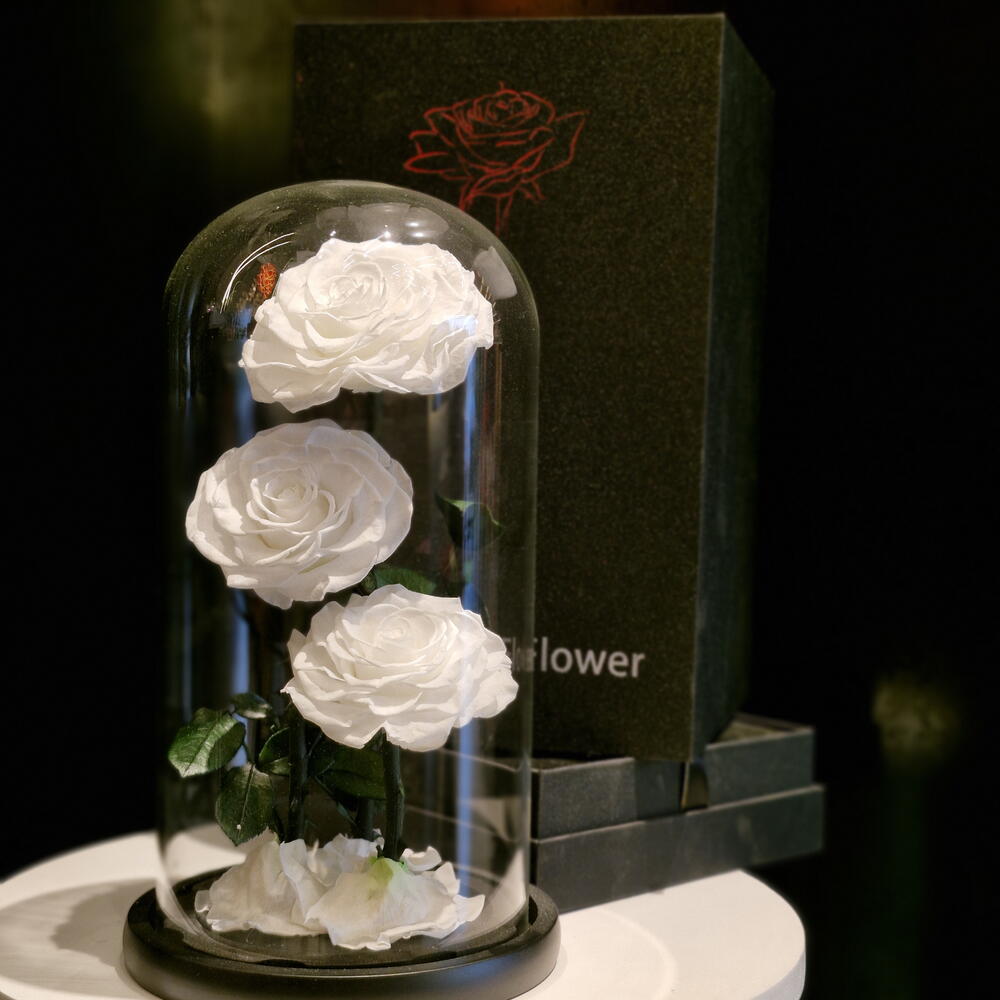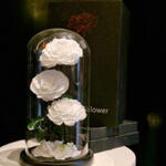 GLASS DOME- ETERNAL ROSES | white 3 roses (LARGE)