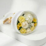 A bright and cheerful bouquet in soft cream and sunny yellow tones, combining classic roses with fresh seasonal accents and airy textures. Light, uplifting, and elegant, this bouquet is perfect for birthdays, thank-you gifts, and joyful everyday moments. • Please Note: As flowers are natural products, actual colors may vary slightly from digital images due to seasonal growth and lighting conditions. We guarantee that the overall style and premium quality as well as freshness of your arrangement will always be maintained.