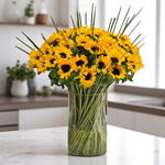 Golden Horizon Vase — 41 Sunflowers in Crystal Clear Glass | Radiant Gift of Warmth, Energy Endless Joy