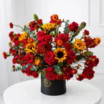 The Golden Love Flower Box is a radiant celebration of love, warmth, and elegance. Designed in a luxurious black hat box, this stunning arrangement blends rich red tones with golden accents and fresh greenery to create a bold yet romantic statement. Perfect for anniversaries, birthdays, romantic surprises, or simply to brighten someone’s day, this flower box delivers a striking visual impact while maintaining a refined, modern aesthetic. Each arrangement is handcrafted by expert florists using premium fresh flowers, ensuring long-lasting beauty and a truly memorable gift. Whether youre sending love across Dubai or surprising someone special at their doorstep, the Golden Love Flower Box is a timeless expression of affection and style. Ideal for: Romantic gifts, anniversaries, birthdays, congratulations, luxury floral surprises.