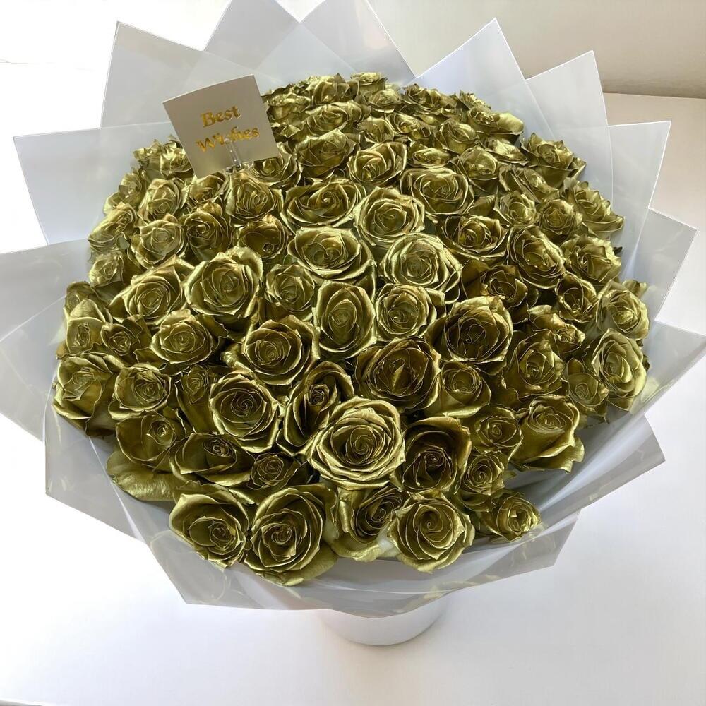 51 Golden Roses Bouquet – Luxurious Gold Spray Rose Arrangement for Special Occasions