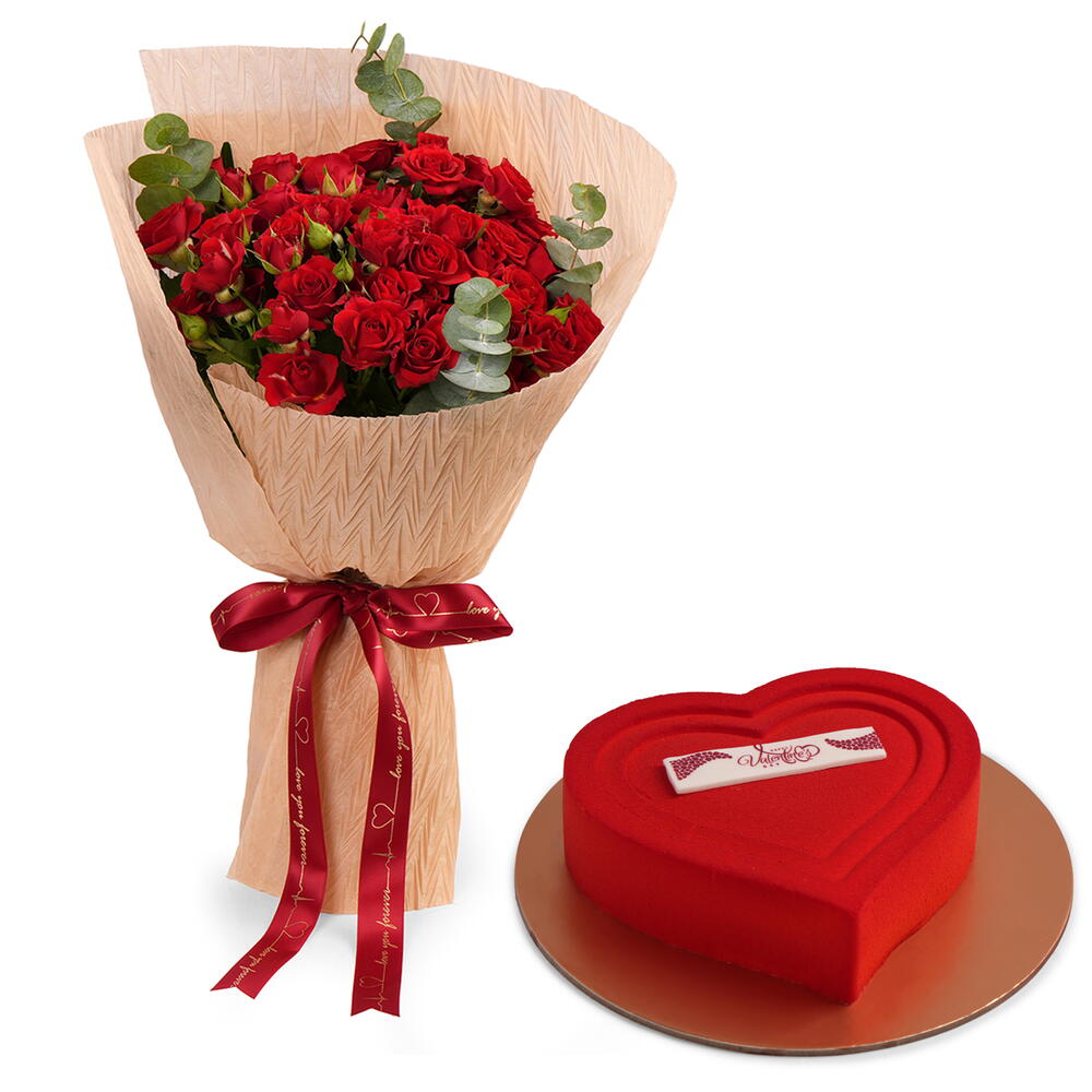 baby red roses - 20 pcs heart chocolate cake - 1 pcs