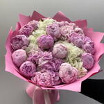 Bouquet of pink peonies and white hydrangeas