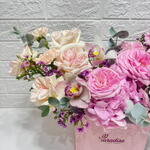 Box - 1 pcs pink o'hara - 6 pcs white ohara - 5 pcs pink hydrangea - 1 pcs peach carnation - 6 pcs