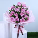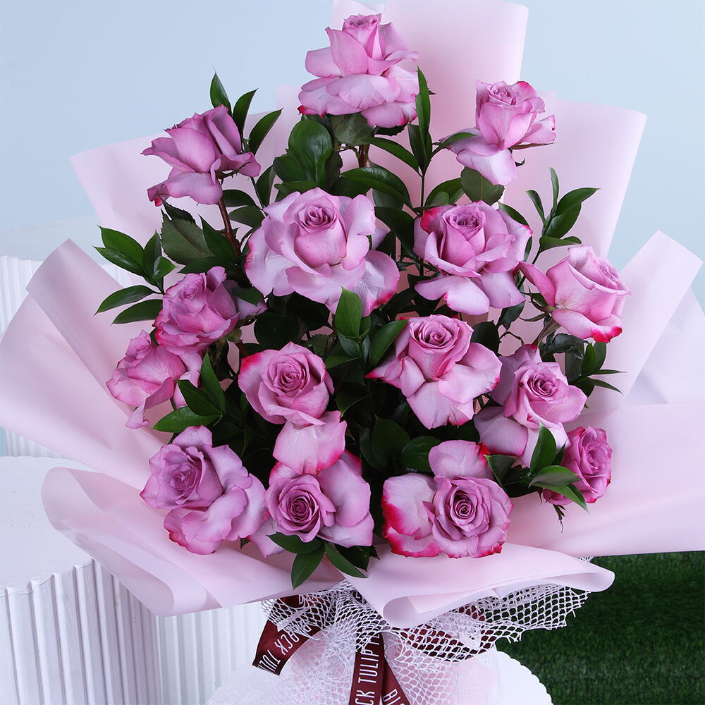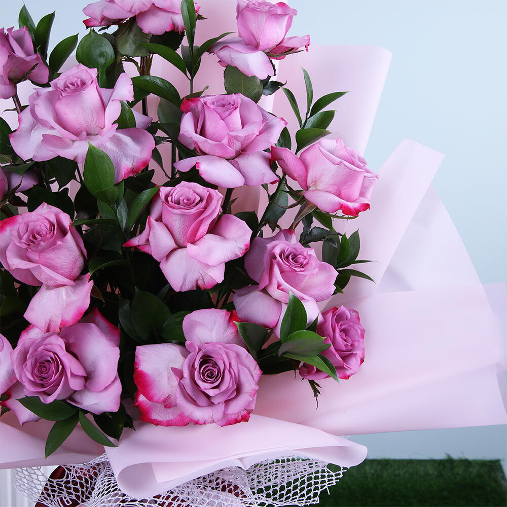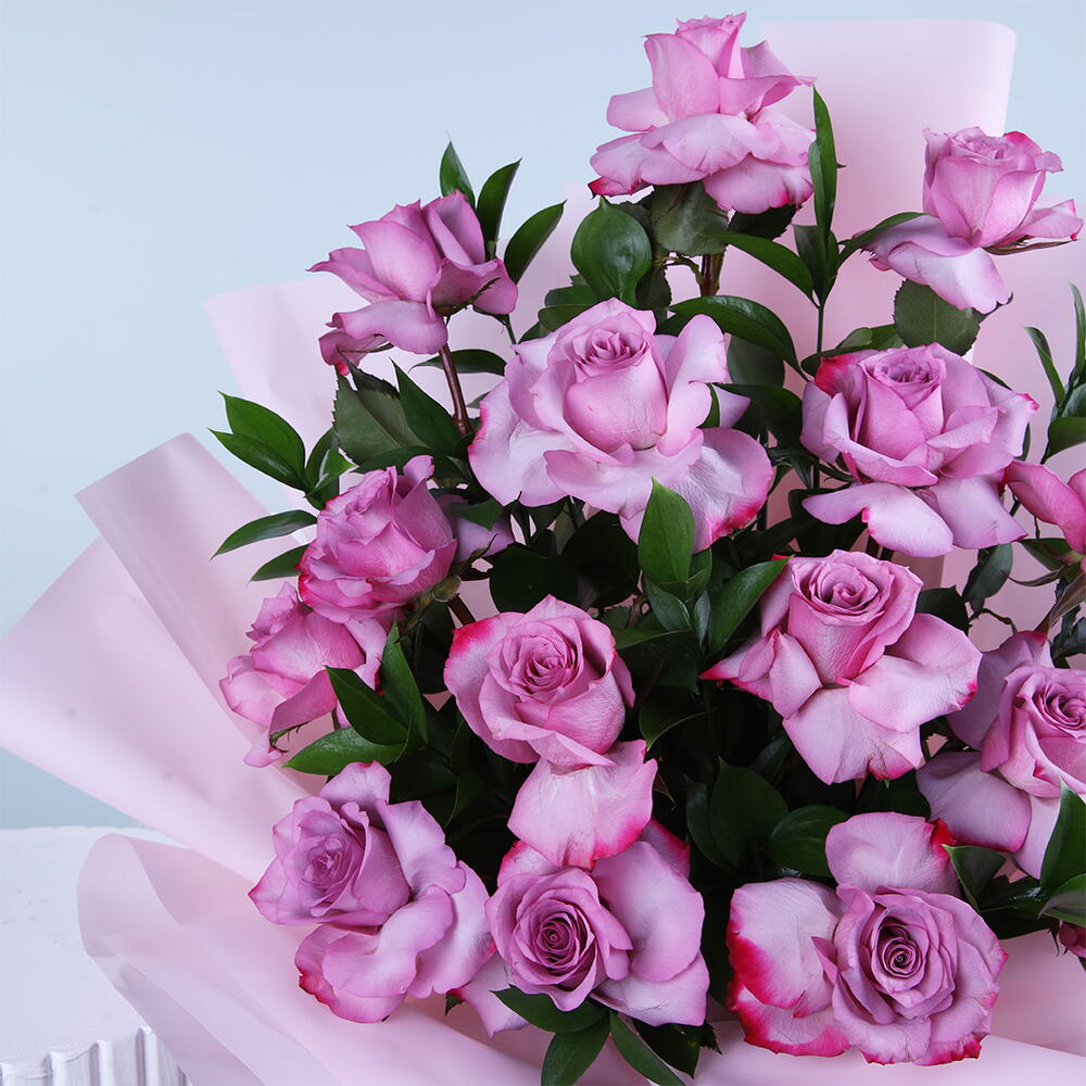 purple rose - 15 pcs ruscus leaves - 10 pcs