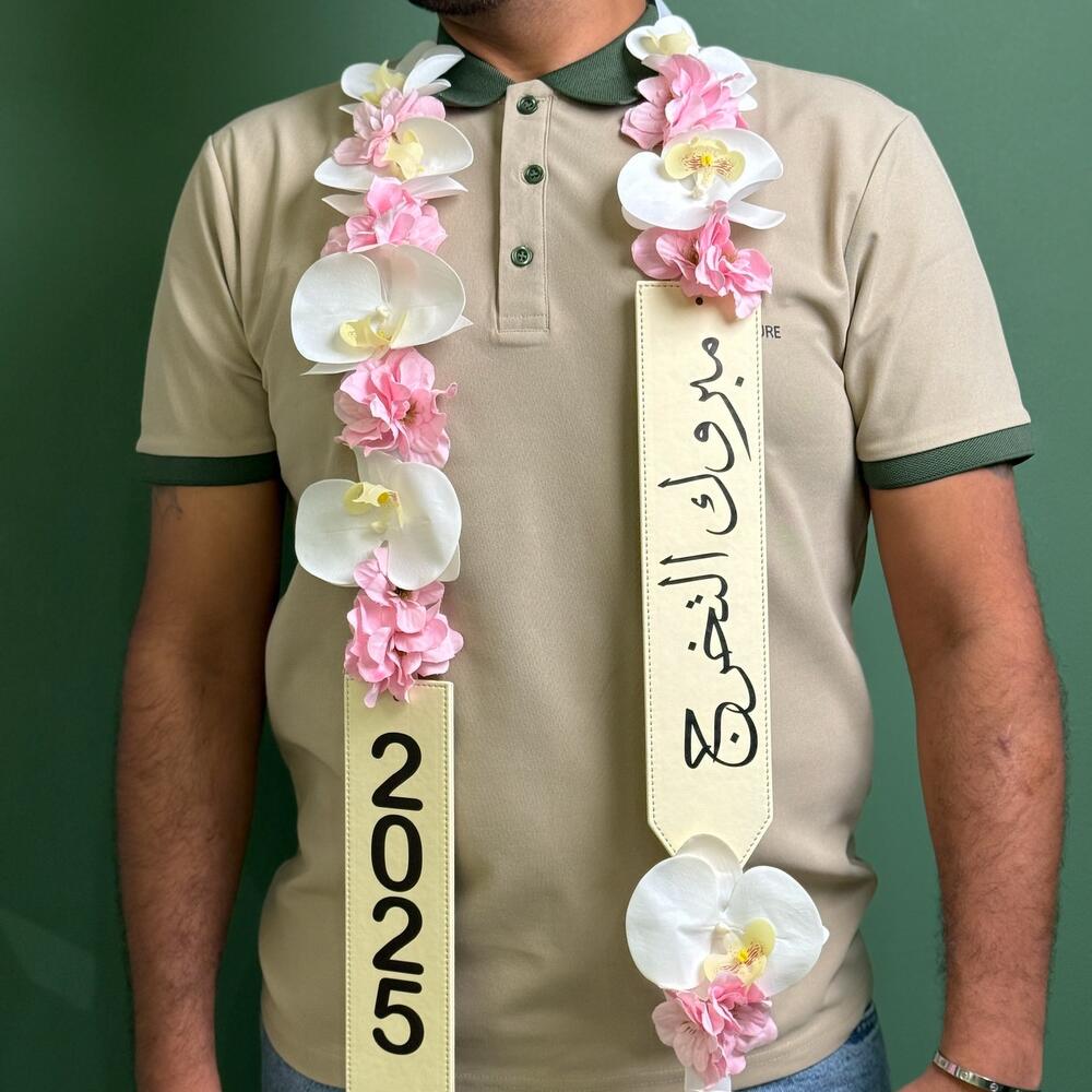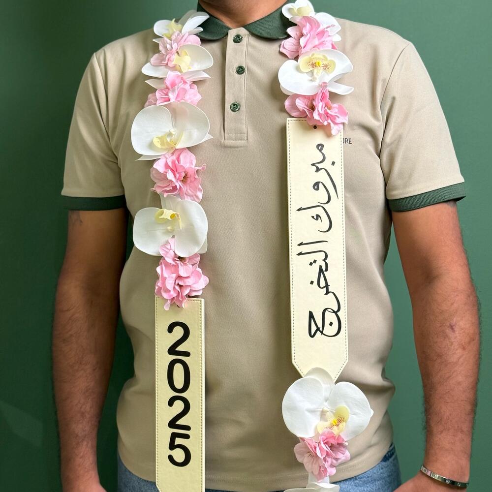Graduation necklace you can choose the color of flowers. Artificial floral necklace with leather Uv print