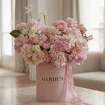 This exquisite flower box for March 8th combines soft shades of pink, peach, and cream. Roses and ranunculuses create a harmony of spring elegance, perfectly highlighting your warm gesture of attention. A wonderful choice for your most cherished women! Includes nerine, pink Mondial rose, Sweet eskimo rose, ranunculus, eustoma, sweet pea, spray rose, daffodil, tulip, hydrangea. The set comes with a personalized card, care instructions, flower fertilizer. *Flower delivery today Perfect for: - a gift for her; - weddings or anniversaries; - birthday; - perfect dates; - gift add-ons; - International Womens Day; - gifts with no occasion; - VIP events or luxury floral surprise.