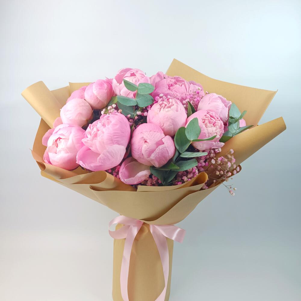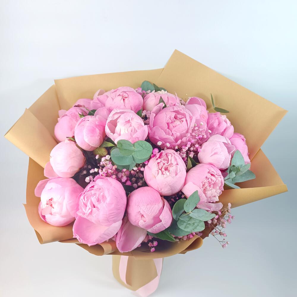 Eucalyptus - 5 pcs Gypsophila - 5 pcs Peony - 19 pcs