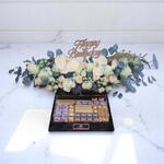 Happy Birthday Floral Gift Box with Premium Chocolates – Elegant Acrylic Arrangement with Roses, Orchids Eucalyptus