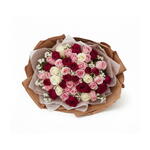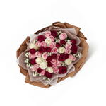 gypsophila white - 8 pcs red roses - 7 pcs red baby roses - 5 pcs pink roses - 15 pcs white roses - 7 pcs