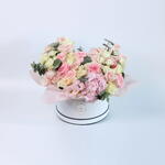 Indulge in the alluring beauty of this exquisite Flower Box, meticulously arranged with 20 spectacular blooms( lovely pink Roses, white Roses and mix Roses complemented by eucalyptus greens ). Lovingly curated within an elegant box, this compilation radiates a sense of serenity and charm. These stunning floral delights are an ideal pick to brighten up your space or gift to your loved ones on special occasions. Experience the splendor of nature from the comfort of your home with our enchanting Flower Box.