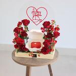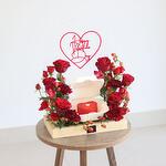 Red rose - 6 pcs carnation - 4 pcs baby rose - 2 pcs korean cake - 1 pcs