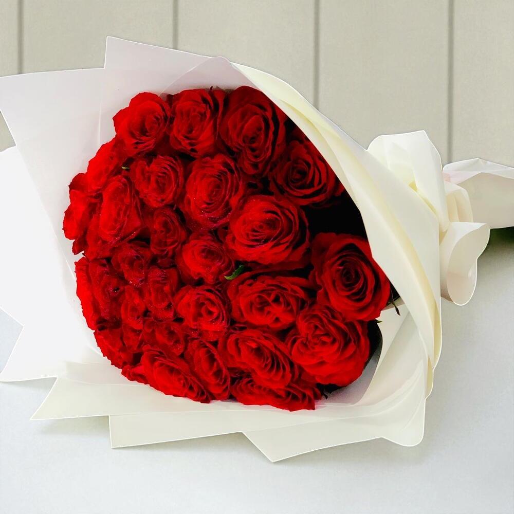 Celebrate love in its purest form with our Happy Valentine’s Day 30 Red Roses Bouquet. Featuring 30 lush, velvety red roses wrapped in an elegant white wrap with a chic bow, this bouquet radiates romance and sophistication. Perfect for Valentine’s Day, anniversaries, or any special occasion where you want to express deep love and heartfelt emotions. Care Recommendations Upon receiving the bouquet, place the roses in a clean vase filled with fresh, cool water. Trim the stems at a 45-degree angle every two days to maintain water absorption. Keep the bouquet in a cool spot, away from direct sunlight, heating sources, or cold drafts. Change the water daily and remove any fading petals to keep the arrangement looking fresh and vibrant for as long as possible.