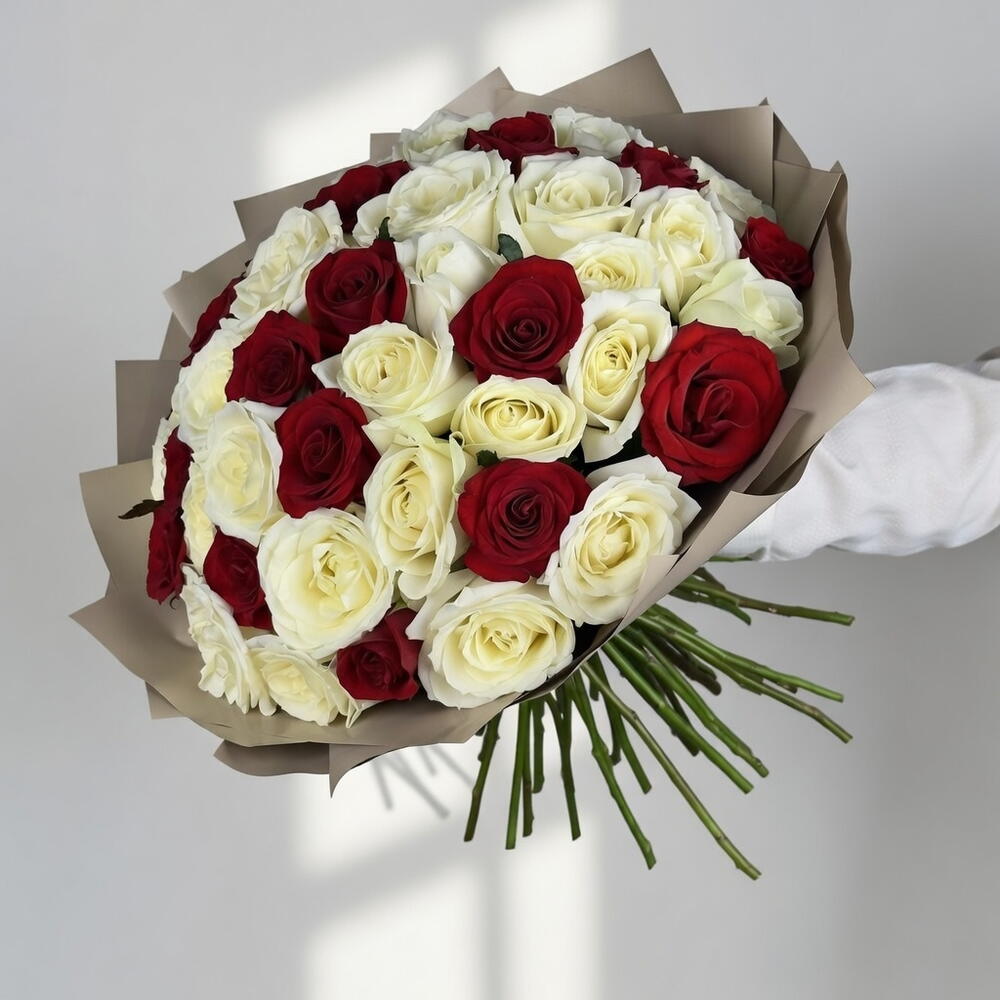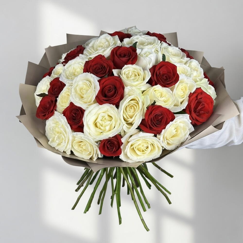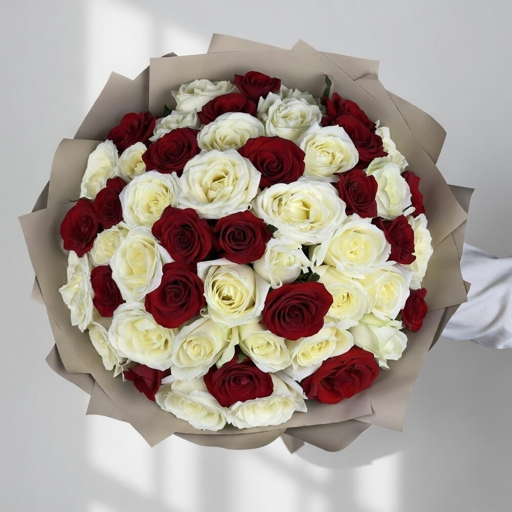 Harmony Duo is a striking mono-bouquet composed of fifty-one Kenyan roses in an elegant combination of pure white and rich red shades. The contrast between the two colors creates a powerful visual effect — white symbolizing sincerity and purity, red representing passion and deep emotion. With 40 cm stems and a full, rounded shape, the bouquet offers a compact yet luxurious presentation. The balanced mix of tones makes it suitable for both romantic gestures and meaningful celebrations. This arrangement is ideal for birthdays, anniversaries, weddings, Mother’s Day, Valentine’s Day, graduations, engagements, or a heartfelt surprise without a specific occasion. It is also appropriate as a refined and respectful gift for colleagues or leaders. Carefully prepared to ensure freshness and premium appearance, this bouquet delivers elegance, emotion, and unforgettable impact in one composition.