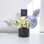 Celebrate greatness with distinction. The Hats Off Champion Graduation Box + BLEU DE CHANEL is a refined gift that marks milestones with style and substance. Designed for the achiever who’s as composed as he is driven, this elegant arrangement is paired with the timeless allure of BLEU DE CHANEL Eau de Parfum (100ml) — a scent known for its depth, character, and confidence. The floral design features a bold contrast of 2 Blue Hydrangeas, 7 White Roses, and 6 White Spray Roses, representing clarity, new beginnings, and enduring pride. Framed with silver dried palm leaves and topped with a graduation cap accent, it delivers visual elegance with masculine charm. Presented in a matte black round box printed with Hats Off Champion, this premium set is a standout graduation gift — ready to impress, inspire, and be remembered.
