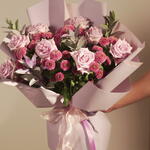 Ruscus - 10 pcs Pink rose - 10 pcs spray pink chrysanthemum - 30 pcs