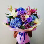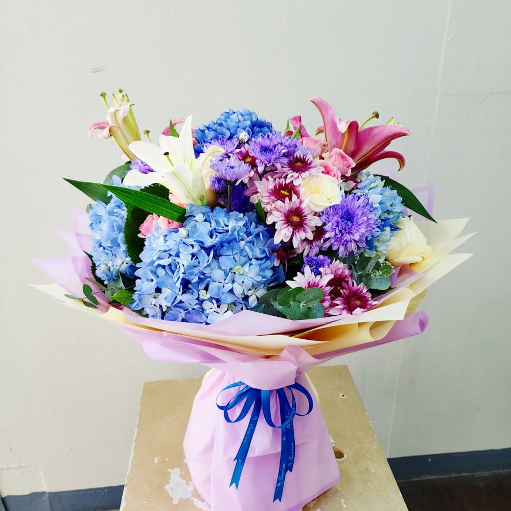 lilly - 6 pcs white roses - 10 pcs bule haydriga - 7 pcs