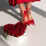 heart shape box - 1 pcs red velvet roses - 19 pcs