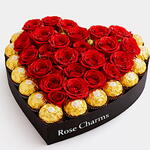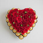 A perfect harmony of love and indulgence, this exquisite arrangement features 11 vibrant red spray roses paired with 21 decadent Ferrero Rocher chocolates, all elegantly presented in a transparent heart-shaped box. The roses embody passion and romance, while the chocolates add a touch of irresistible sweetness. A truly unforgettable gift, it’s the ideal way to celebrate Valentine’s Day, anniversaries, or any special occasion where love deserves a luxurious expression. 🌹🍫 Why choose between flowers or chocolates, when you can give both? Tap to order now send love straight to their heart!
