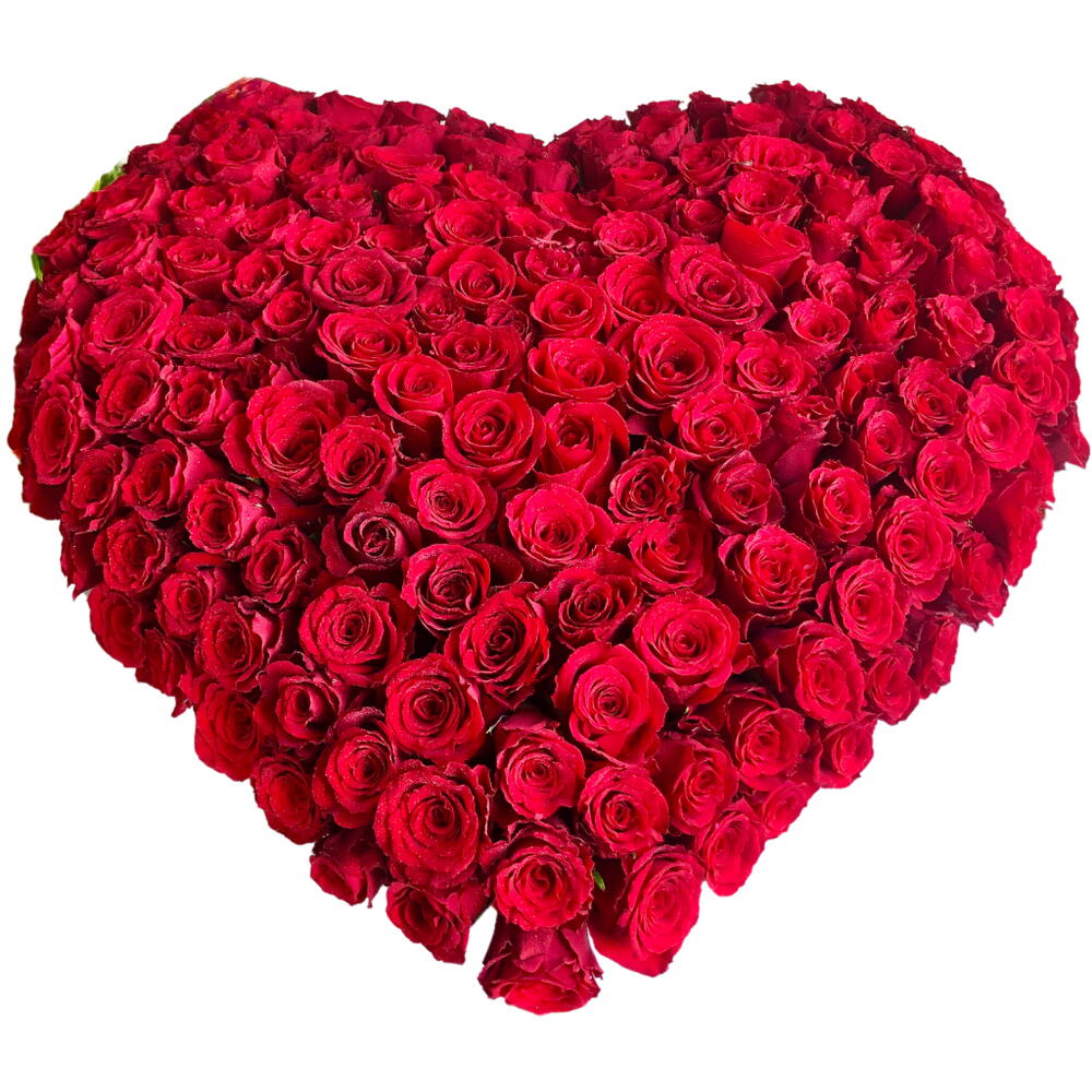 A breathtaking heart-shaped arrangement of 101 red roses, crafted for grand romantic moments.