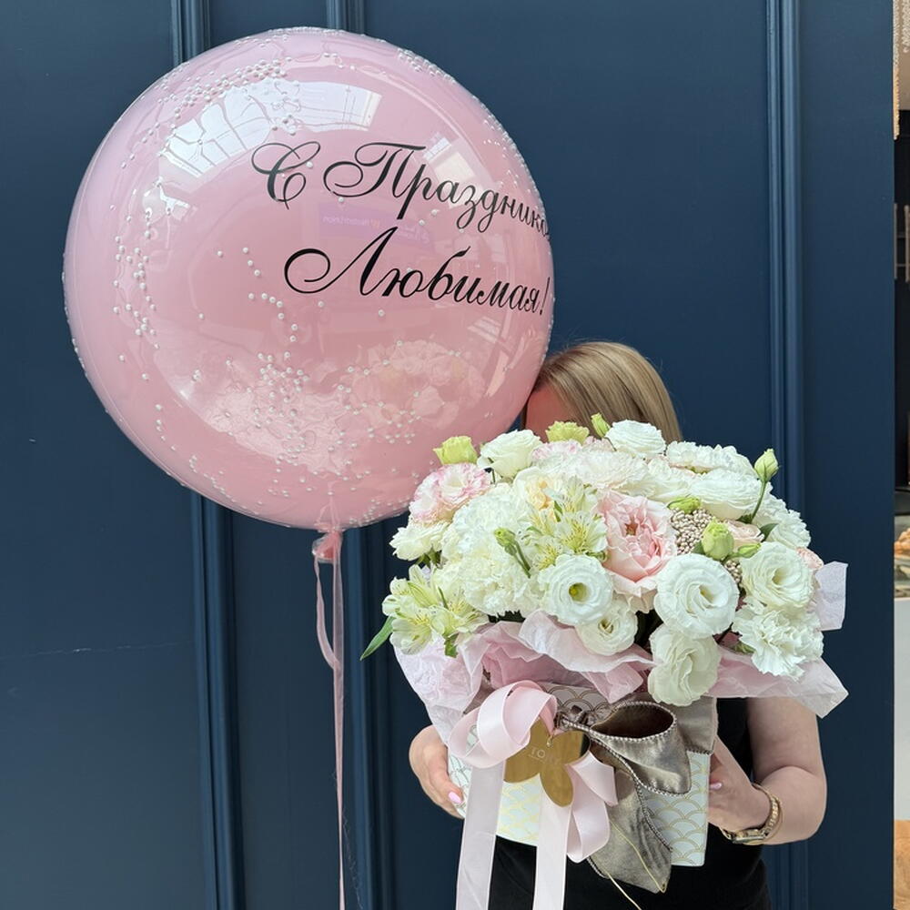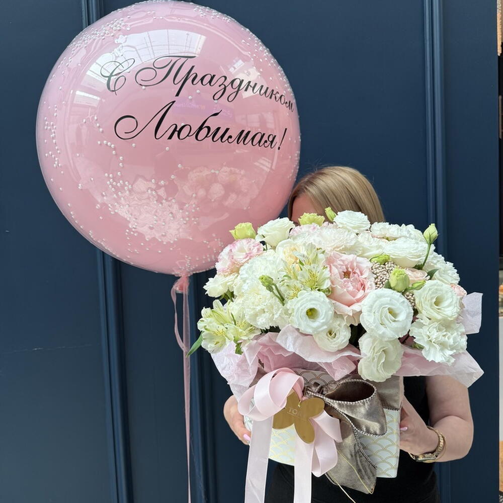 Composition: Dianthus mix - 5, Lisianthus - 9, rose white expression - 3, Alstroemeria - 5, Ozothamnus - 1, Rose spray import pink - 3, box - 1 Sizes: WIDTH - 45CM; HEIGHT - 45CM; LENGTH - 45CM; (including packaging) Size: 45 x 45 x 45 cm