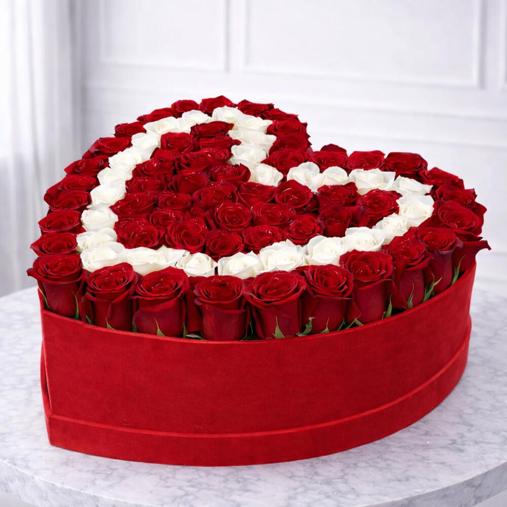 Heart Soul is a classic expression of love, thoughtfully designed to speak straight from the heart. Featuring 50–55 red and white roses, beautifully arranged in an elegant heart-shaped box, this arrangement blends passion with purity in perfect harmony.