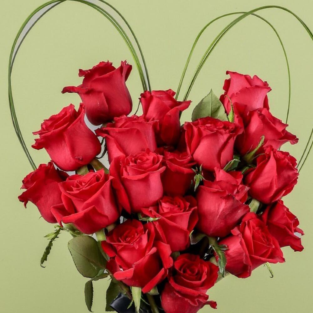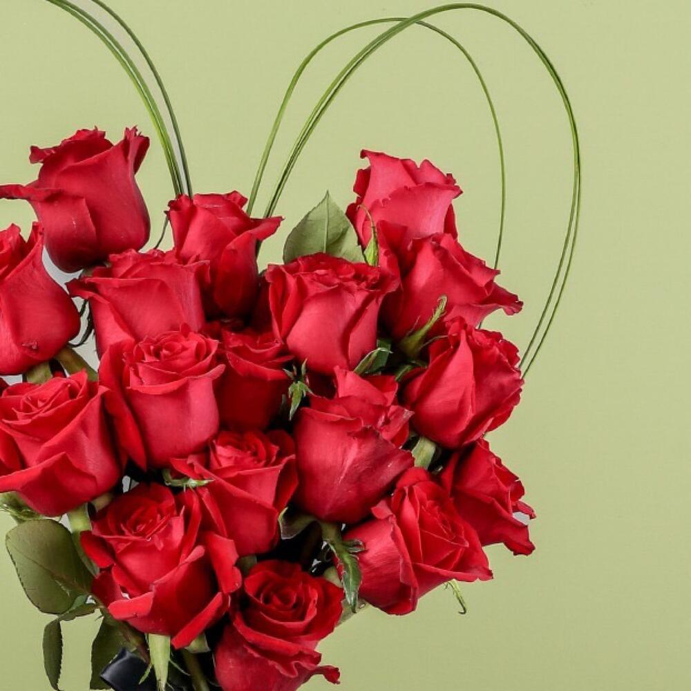 Red rose - 22 pcs Ribbon - 1 pcs flexi grass - 5 pcs